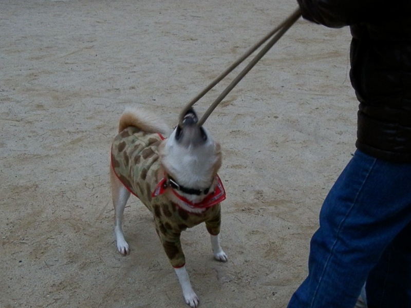 せめてさぁ、もうちょっと他のわんこが来ないようなところで遊ばせようよ…。