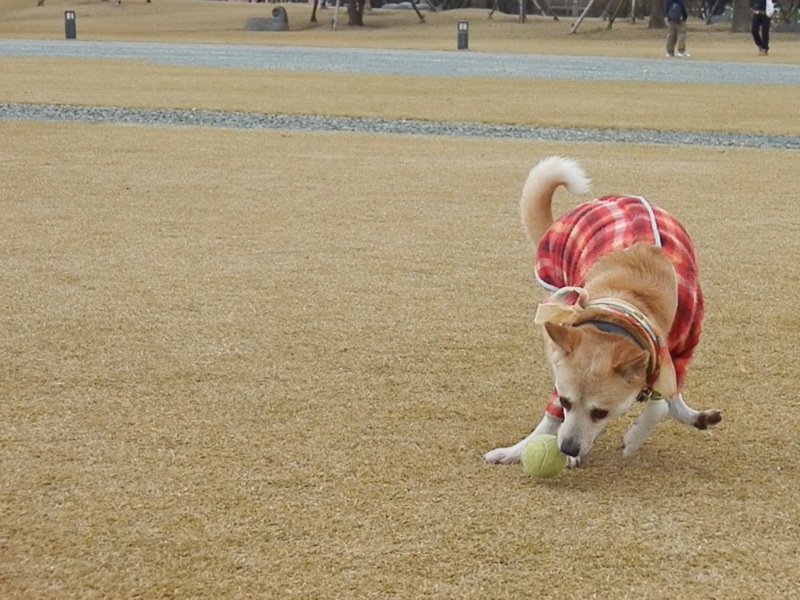ハヒハヒ言うまでボールで遊んだら、後は公園を1周。
