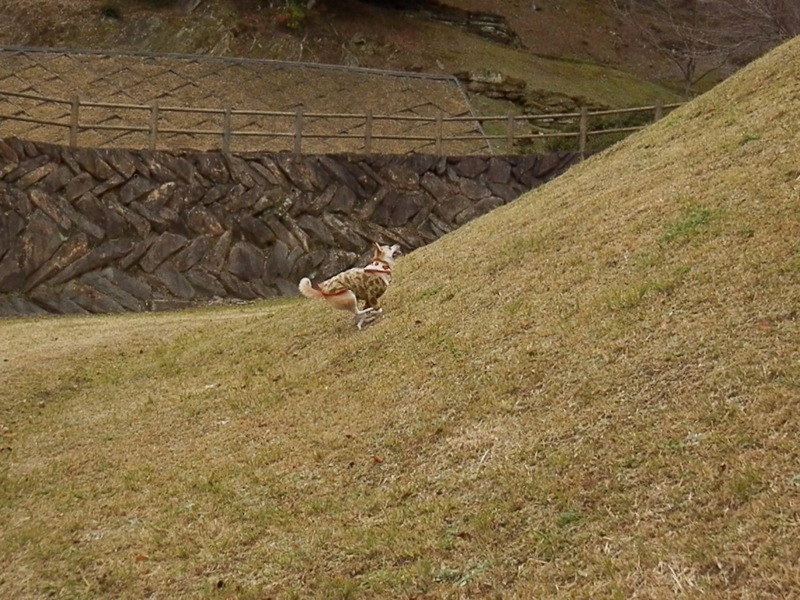 駐車場のすぐ下の広場で斜面に向かってボール投げたら上る…!