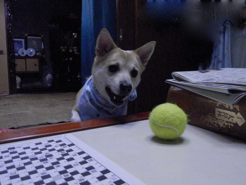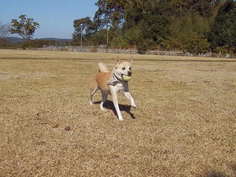 疲れたのか木陰に行ってごろんごろんし始めたから、もういいかなと思ってボールを拾えば、また投げるのを待ち構えてるし。