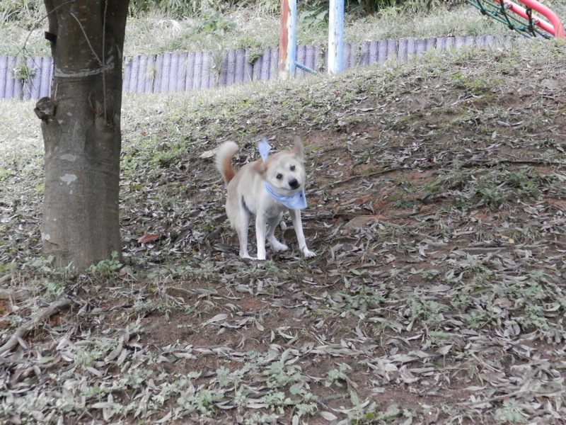 上の写真の中央の大きな木の向こう側にグラウンドがあって、誰もいなかったんでろろたはそこで遊ばせてもらうことに。