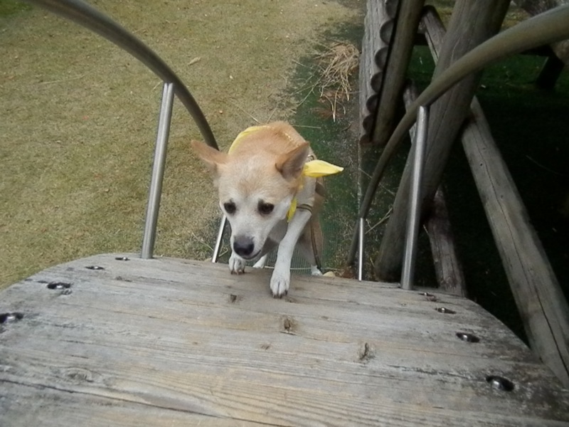 絶対登れなくて、うろうろおろおろねえちゃんを見上げるだろう可愛い様子を撮ろうと思ってたのに、登ってきたよ…。