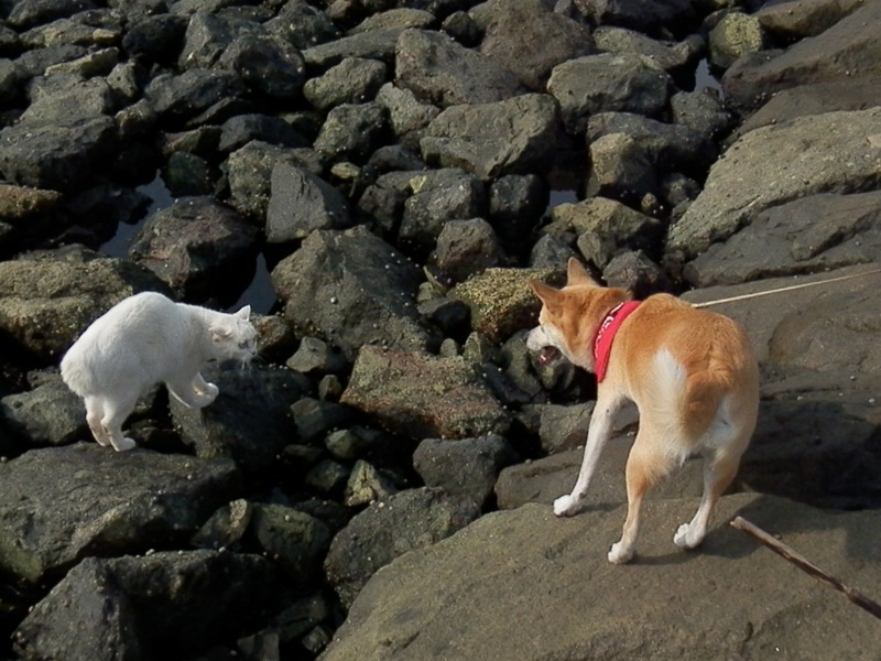 一生懸命睨み合って、わんわん吠えてみてはいるけども、