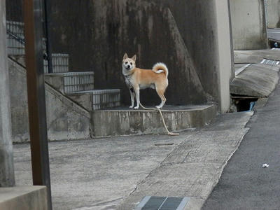 昼間はベランダにいるらしいんで、月曜、車を駐車場に戻しに行ったついでに覗いてみたら、まだ幼い感じもする柴っこさんでした。