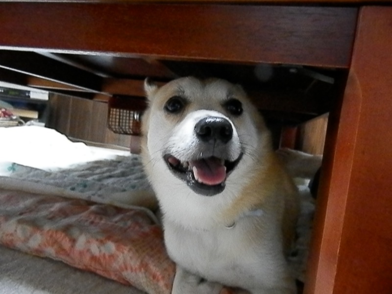 何かの下に潜ると安心なのか、安全だと思ってんのか、家でも必ずテーブルの下に潜るもんね。
