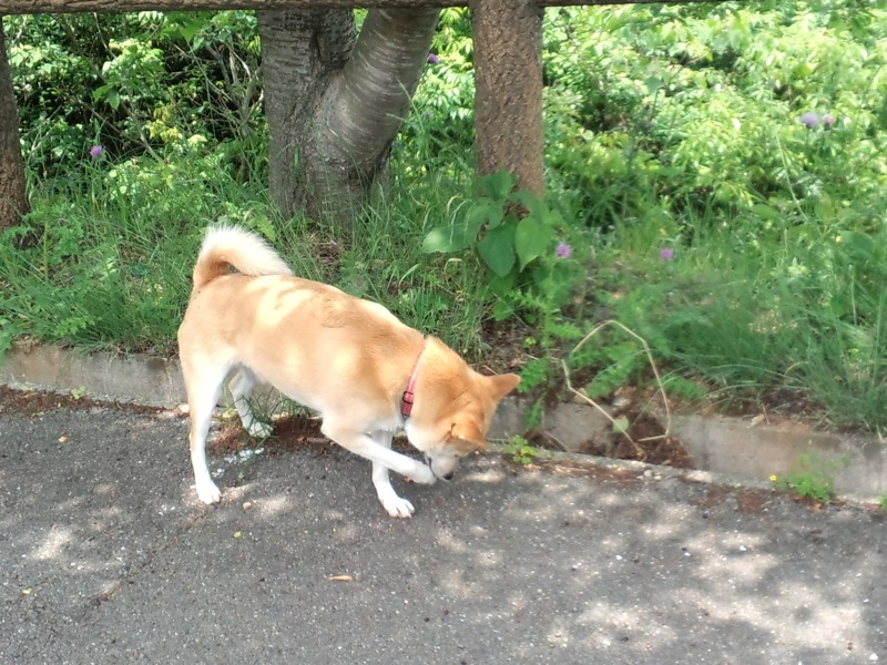こりゃ酷いわ、と言いつつ、あんまり草の伸びてない辺りを少し歩いてたら、ろろたが突然、バーッと走り出して。「何?」と思ったら、その先に1mくらいありそうな蛇がっ!!! ヘ(゚曲、゚;)ノ~ ヒィイイイイイ!!