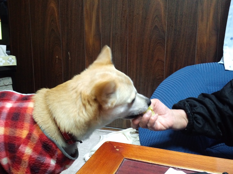 「お土産だよ〜」言って見せたら、そのまま齧ろうとしてました。焼くから待ちなさい;