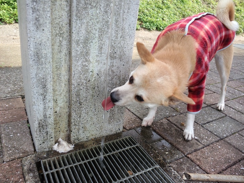 今日は暖かかったんで、水分補給もしつつ、斜面を駆け上がったり駆け下りたり。