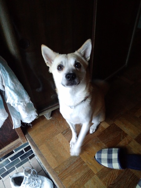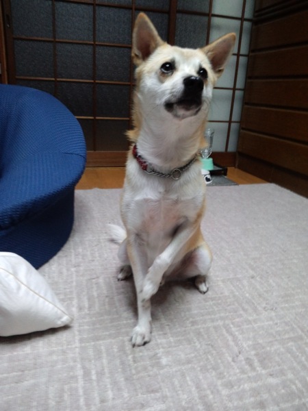 夢でも見てたのか、寝たまま尻尾ぱたぱた振ってました。(^ ^)
