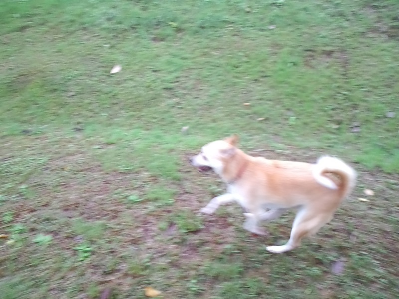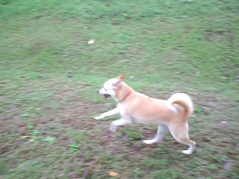 で、さすがに誰もいないんで、手前の芝生で放してやったら、爆走。