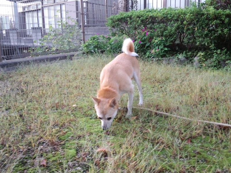 朝んぽで疲れさせれば寝るだろうと言う仮説に基づき、新しい散歩コースの途中の公園で少し遊ばせて来るようになって、早4日。