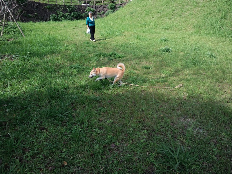 漁港での散歩に加え、放してはもらえないものの、ねえちゃん引っ張って少し走っただけでも疲れたのか、