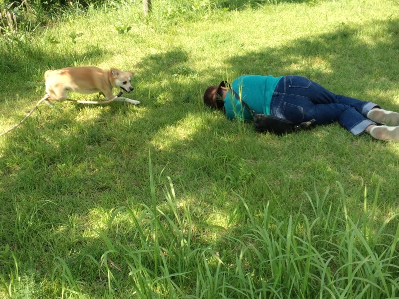 おかあちゃんが草の上にごろんっと横になったら、何故だかテンションの針が振り切れたろろた。