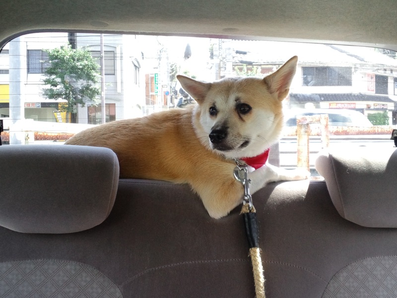 助手席前のダッシュボードの上に、超小型犬が乗ってたんですが。