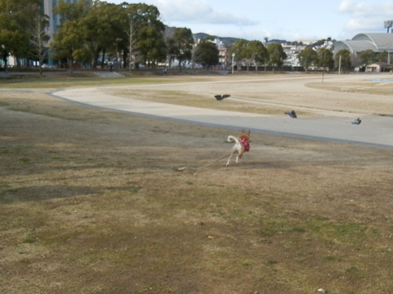 ここでも鳩は追いかけますよ。鳩を蹴散らした後、楽しげに戻って来るのを見て、ジョギングしてた人がにこにこ笑ってました。(^ ^)