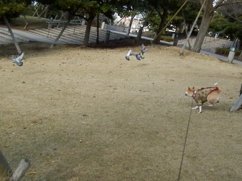 てか、鳩と同じくらいの大きさしかないだろうってくらいのわんこが、やっぱり鳩を追いかけてたよ…!(^▽^)