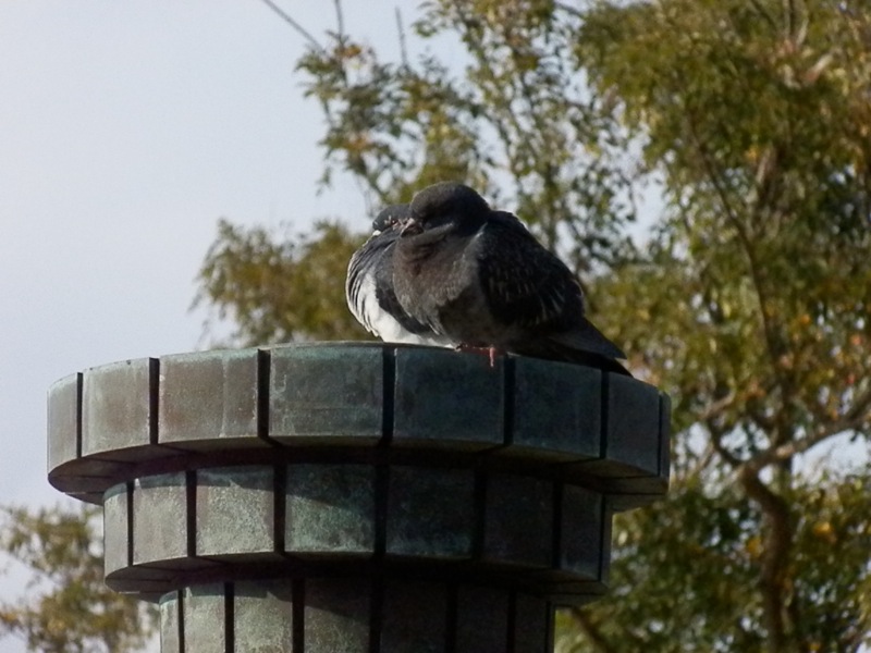 鳩を蹴散らしーの、