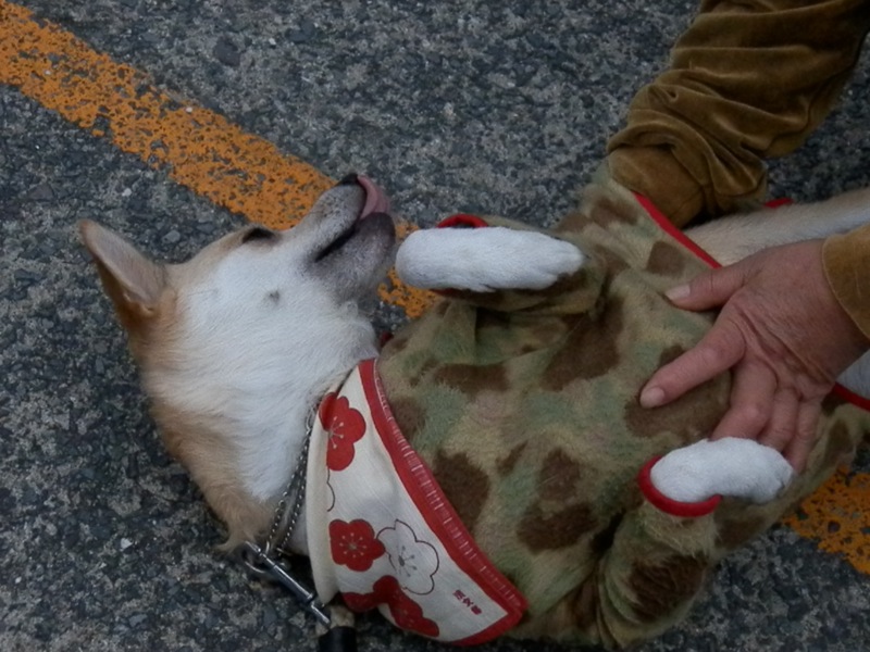 服を着せてからというもの、こうやってごろり〜んと横になって「撫でれ」と訴えることが非常に増えたおぼっちゃま。