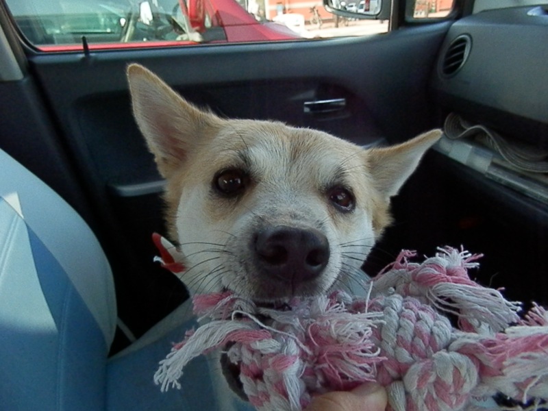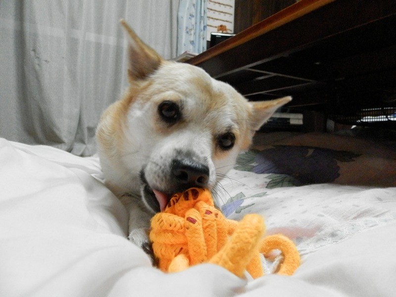 先日、ロープのオモチャを齧ってボロボロにしてしまったんで、新しいのを買ってやったんですけど………