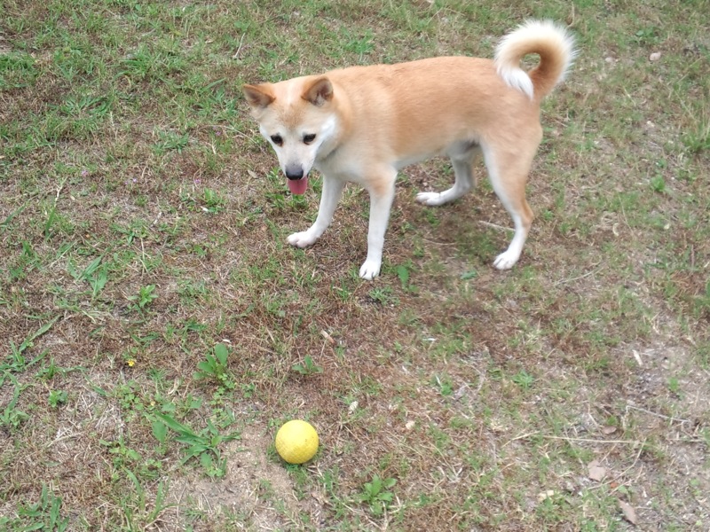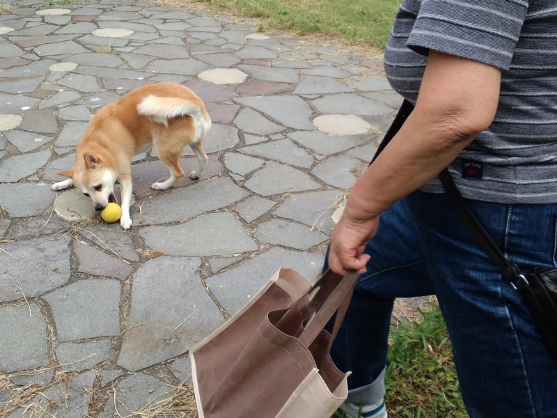 誰もいない広場でボール遊びして、ご満悦でございました。