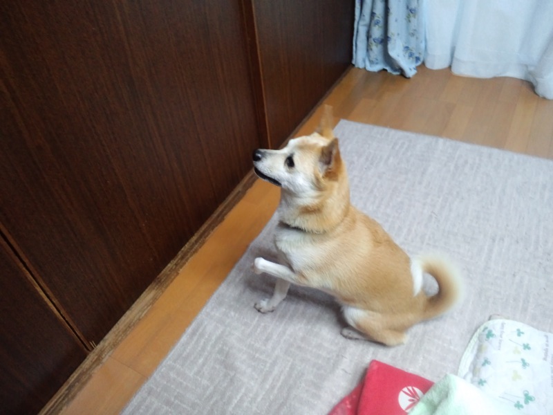 閉めてある戸を「あけて」するので開けてやるも、当然、そこにもおらず、戻って来る。