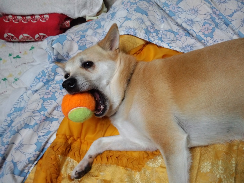 その分、夕方の散歩では、たんぽぽの綿毛を吹き飛ばすねえちゃんにきゃんきゃん言いながら飛びついてきて、リードで引っ張りっこして遊んだけどねー。