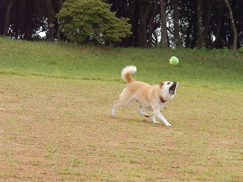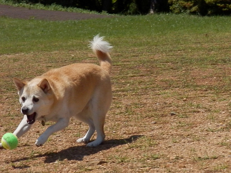 めっちゃ遠くまで投げられたボールを追いかけて、ぼっちゃんはひはひでしたとさ。(^_^;)