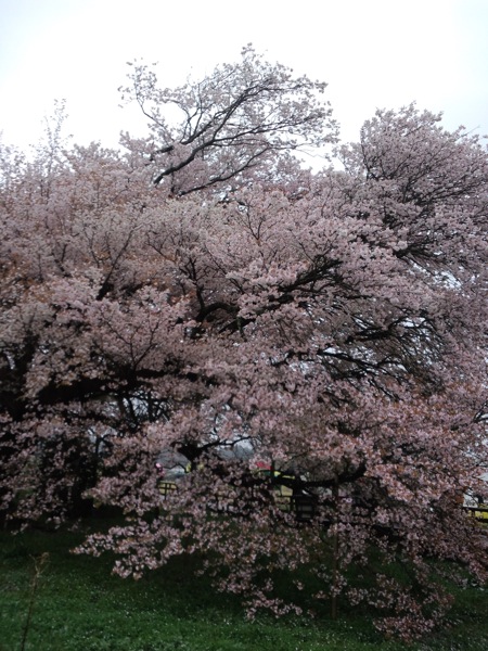 先日、満開宣言が出たばっかだったんですが、何せその翌日が大雨且つ、昨日も雨だったんで多少散ってました…。