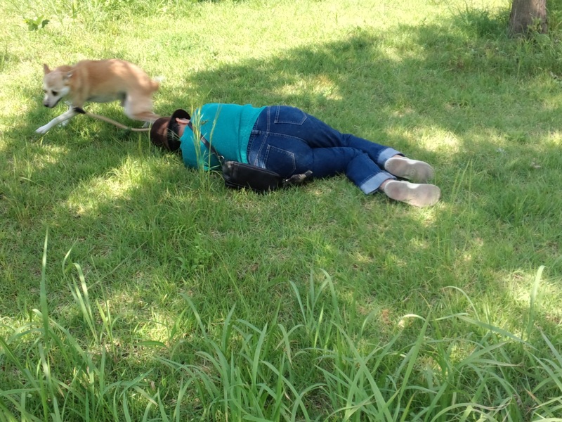 おかあちゃんが草の上にごろんっと横になったら、何故だかテンションの針が振り切れたろろた。