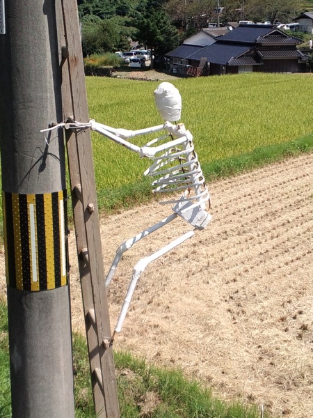 そこで毎年秋分の日に『鬼木棚田まつり』と言うのが開催されてまして、イベントも色々あるんですが、案山子が。毎年色んな趣向を凝らした案山子が飾られてるんです。