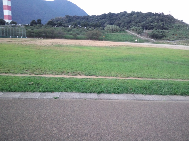 佐世保市側のソフトボール場が空いてる時はそっちに行くんですが、昨日は少年サッカーがあってるようだったので、インフォメーションセンター側の芝生広場へ。