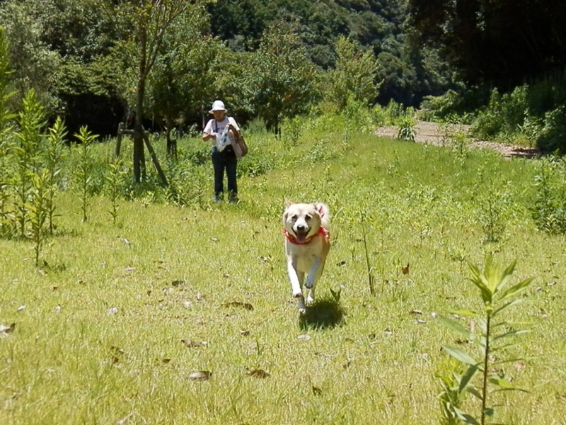 少ししたら、東屋にいた家族も吊り橋の方に下りてったんで、その周囲なら弁当広げてる家族からは距離があるし、ろろたもそこまでは走って行かないから大丈夫だろうと、漸くフリーに。