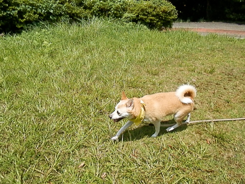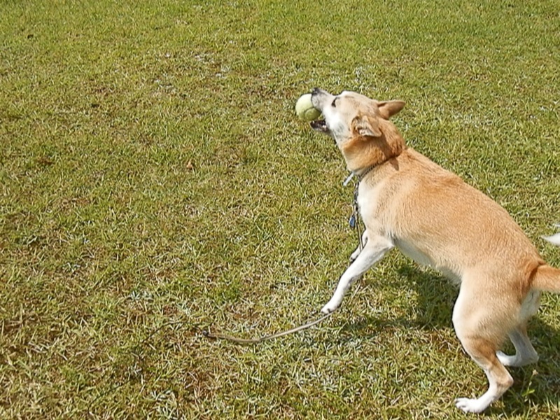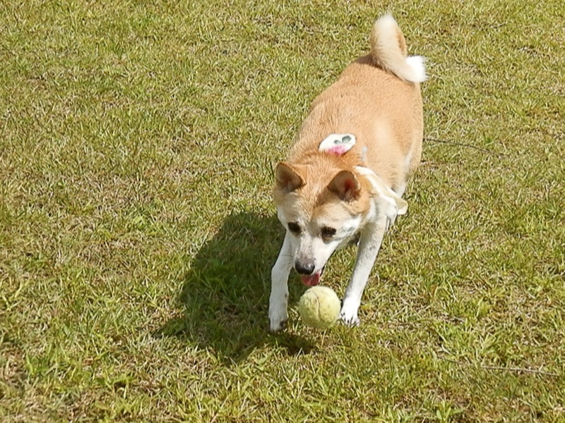リード着けたまんまでボール遊びしてたけど、これじゃ走れないしなぁ。