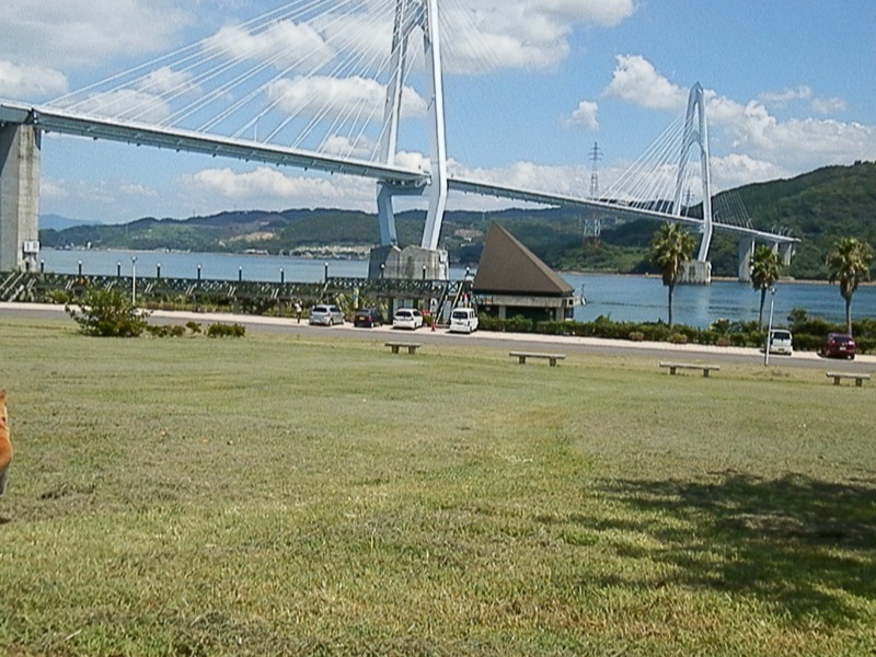 こんな中で遊ばせられる訳がなく、結局、大島大橋公園に行きました。