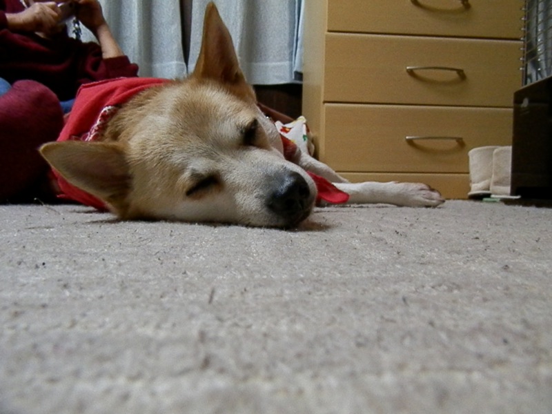 ろろたは風の子ではないので、ストーブの点いた部屋でぬくぬくお昼寝。