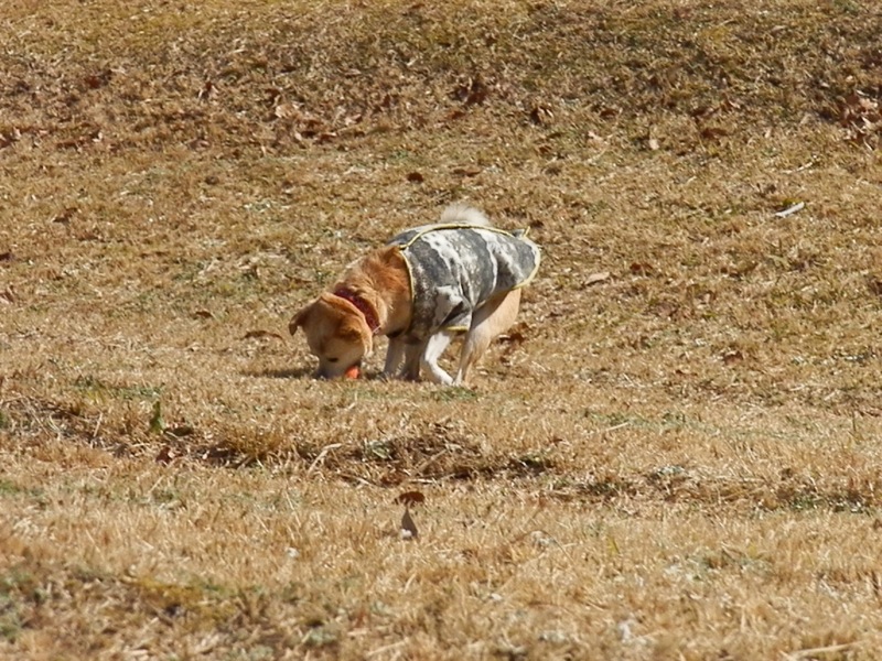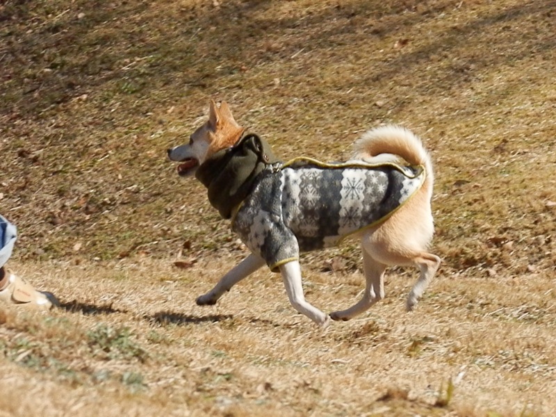 その車が行ってしまってから右折しようと待ってんのになかなか来なくて、何やってんだろ?と思ったら、とっとことっとこ現れたのは、ろろたくらいの柴mixと思われるわんこ。