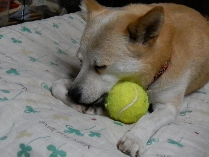 ところで夜、雨でドロドロの足元で休むこともできず、家族が出かけててまんまも貰ってないらしいムクちゃんが悲壮な声で鳴いてたんですが、その声が途切れたと思ったら、ぼっちゃんがギャン吠え。