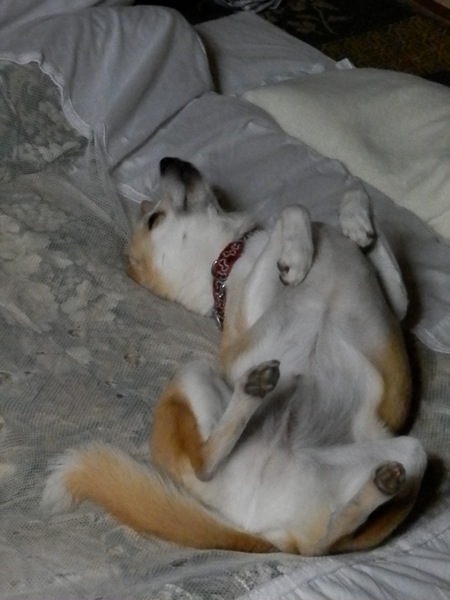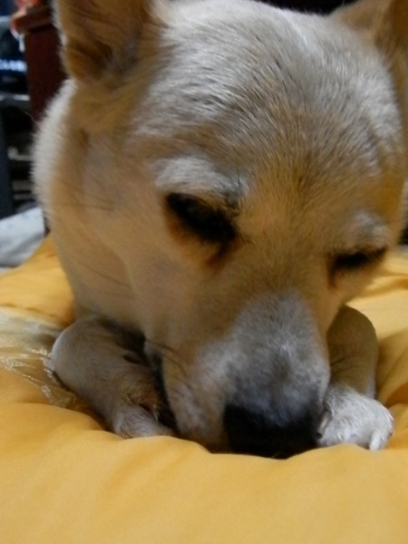 今日はおかあちゃんがお寺さんに行く為、ろろたはひとりでお留守番…のはずだったんですが、何故かじじいが仕事休みで。1日寝かせてもらえてなかったらしく、夕方の散歩も用が済んだら帰りたがる程、眠そうだったらしい。