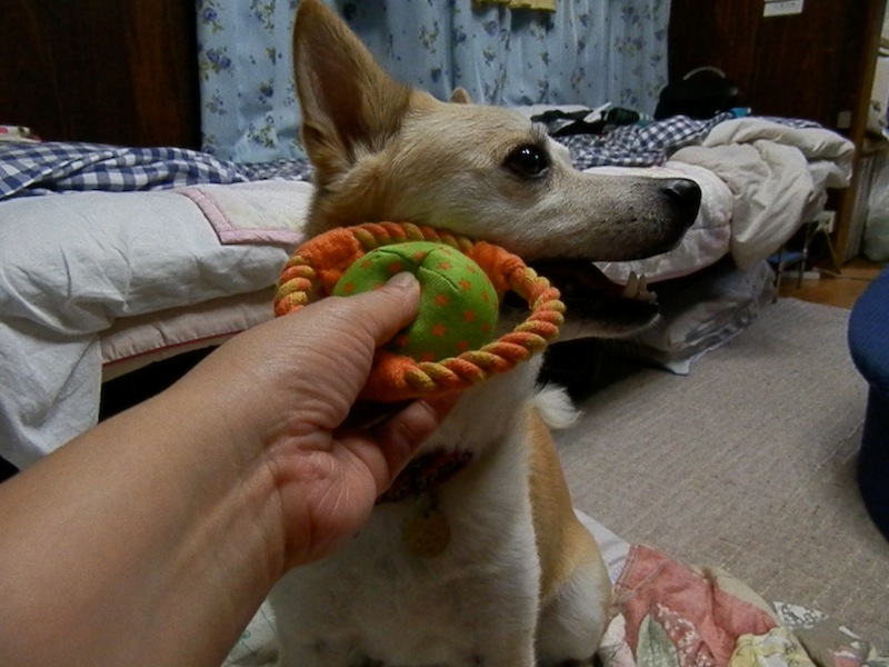 兄ィが臭うっつーんで仕方なく、洗い流さないでいいシャンプーを先日買ったんですが、その時ついでにおもちゃも1つ買ったんですよ。