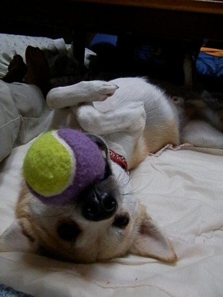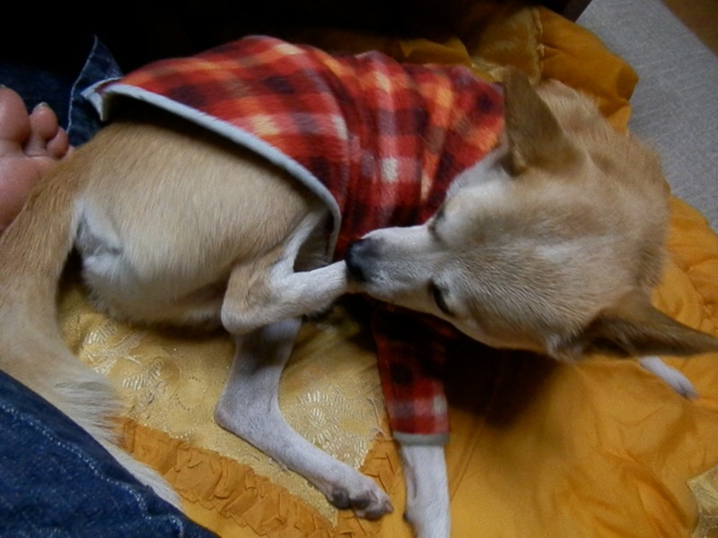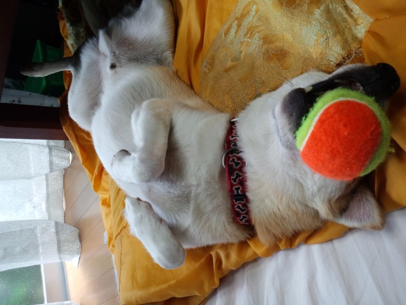 今日も昼間、良く眠れてないのか、ねえちゃんの脇でごーろごろするぼっちゃん。