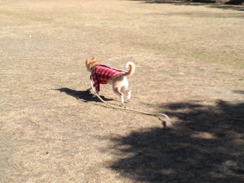 ある休日の朝んぽの時。いつもは私がリード持ってんですけど、その日は靴に石が入ったか何かで、おかあちゃんに渡して先に行っててもらったんです。