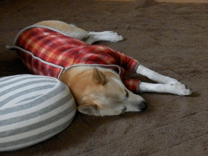ちなみにまだ着せてません。散歩後の足拭きのタイミングで着せないと、こないだみたいに抵抗するから。