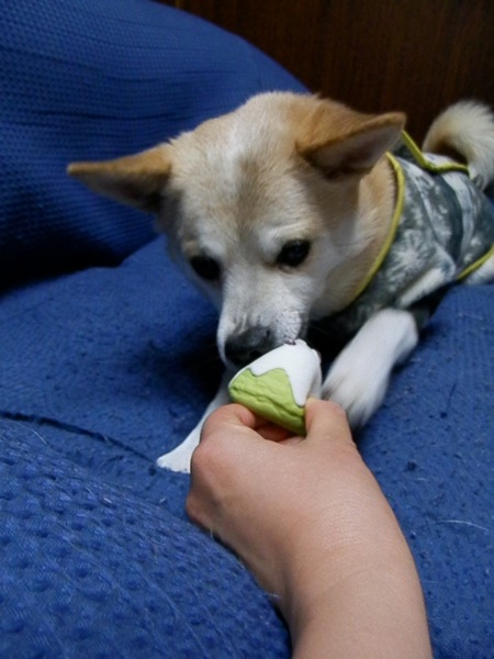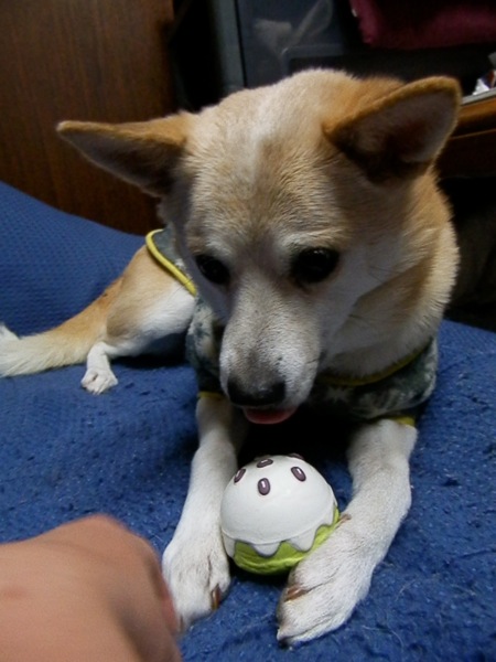 今の季節、まだ真っ暗な中で散歩するのが気になったらしい兄ィ。100均で手首とか足首とかにマジックテープで巻いて使う反射テープを買って来てろろたんに装着。で、今朝もいつものように装着して散歩に出たんですが。