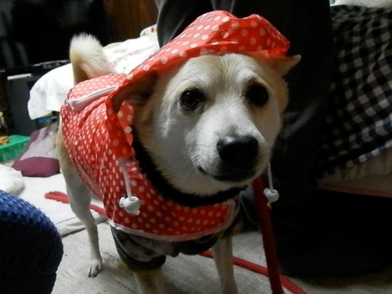 頭はやっぱり被るの嫌がるのであんまり意味ない気がしなくもないですが、体が濡れない分だけいいのか、最初は嫌がってたはずが、今は嫌がらずに着て行きます。