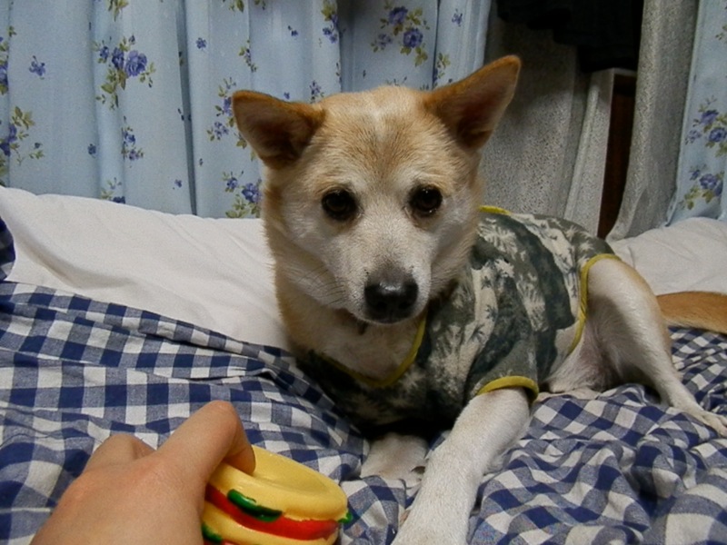 ガジガジして毟り取ったレタス部分を、飲み込みはしないんだけどあぐあぐしてたので、おかあちゃんが取り上げてポイしてしまいました。