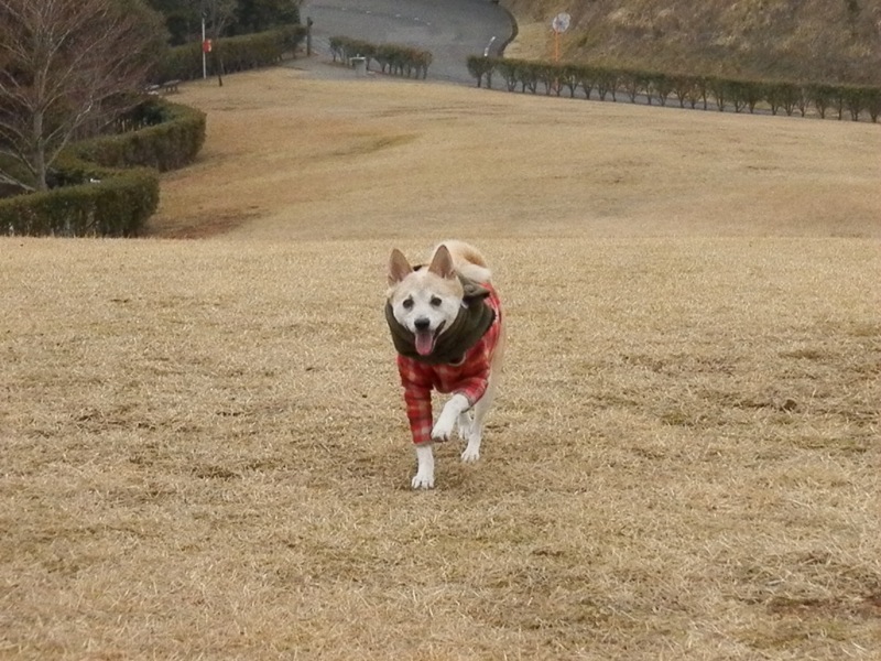 ひとりでぐるぐる走った後は、ねえちゃんに「よーい、ドン!」言われる度にダッシュ。