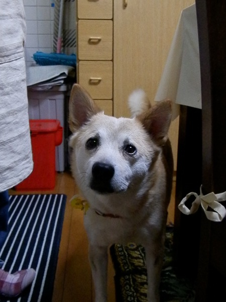 明日は雨だからと坂の下に車を下ろしておいて家に向かっていたら、後ろからヒューヒューゼイゼイ言う声(?)とバタバタと足音が。