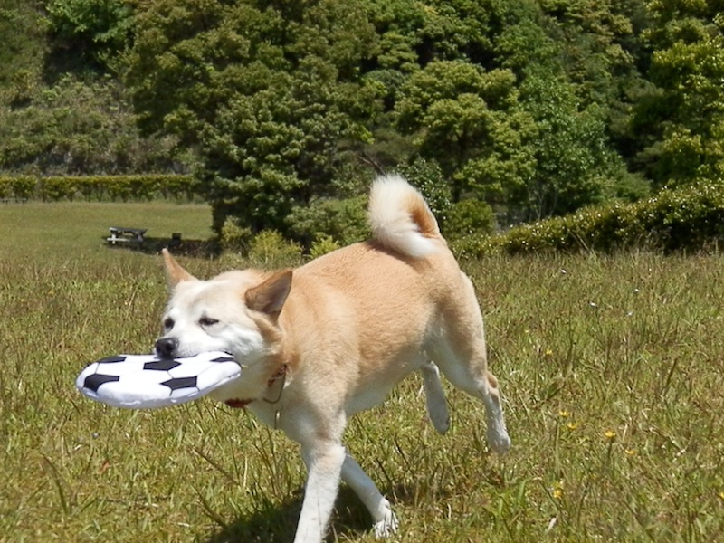 以前、ロープと布製のディスクを与えてみた時、取って来てそのまま引っ張りっこになっちゃったことがあったからどうかなと思ったんだけど、齧ったり毟ったりすることなく、良く遊びましたよ〜。