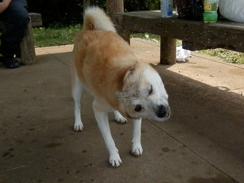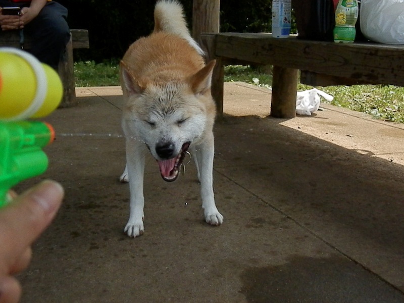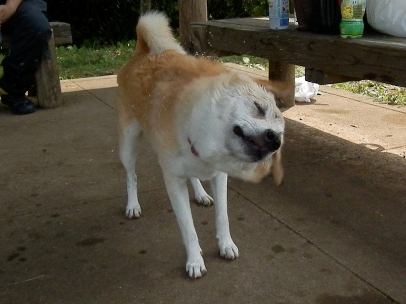 まあ、ここんとこ遊びに行くと、クールダウンと称してびしょ濡れにした上で、湿った落ち葉の上でごろりんごろりんしてたんで、多少汚れちゃいるだろうなとは思ってたんでね。