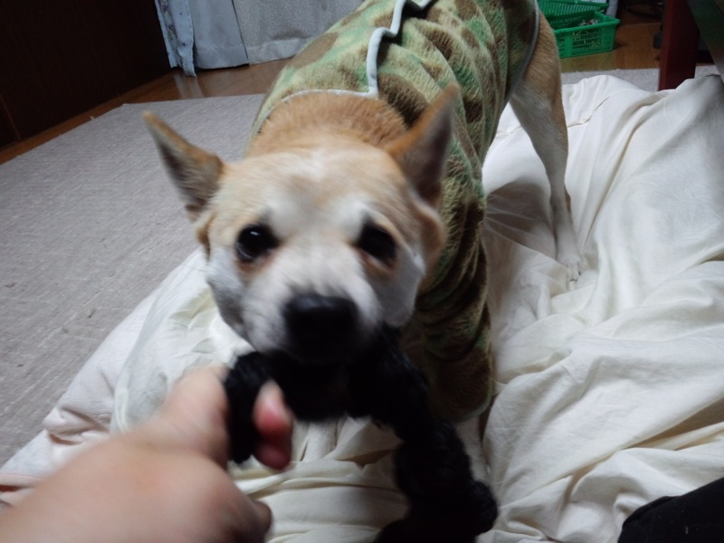 散歩の後半、何か歩き方が変なので、足をどうかしたのかと思ったんだけど、抱っこは嫌な様子。